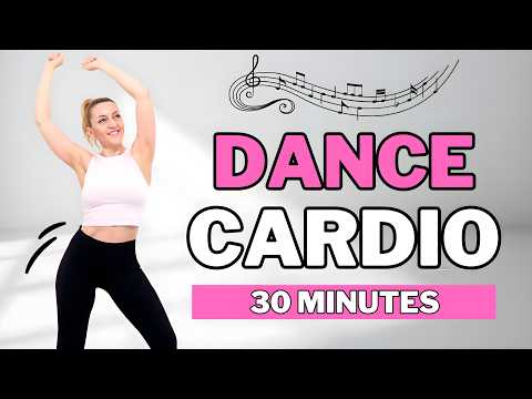 ♪ Get ready to shed those extra pounds with this fun 30 min Dance Cardio Aerobics Workout – no equipment, no jumping & no talking!